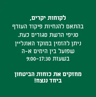ניתן לפנות אלינו גם באמצעות הטופס הבא, אנא מלאו פרטיכם ונוכל לחזור אליכם במהרה