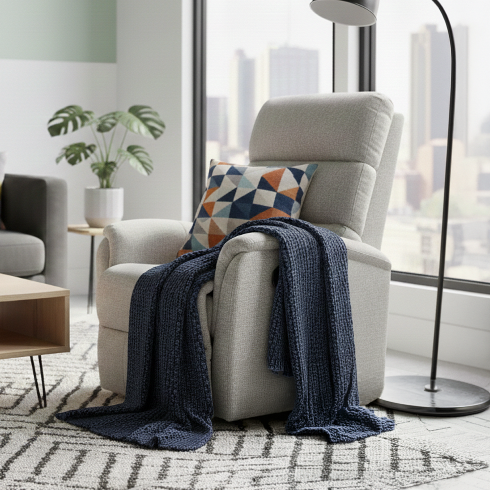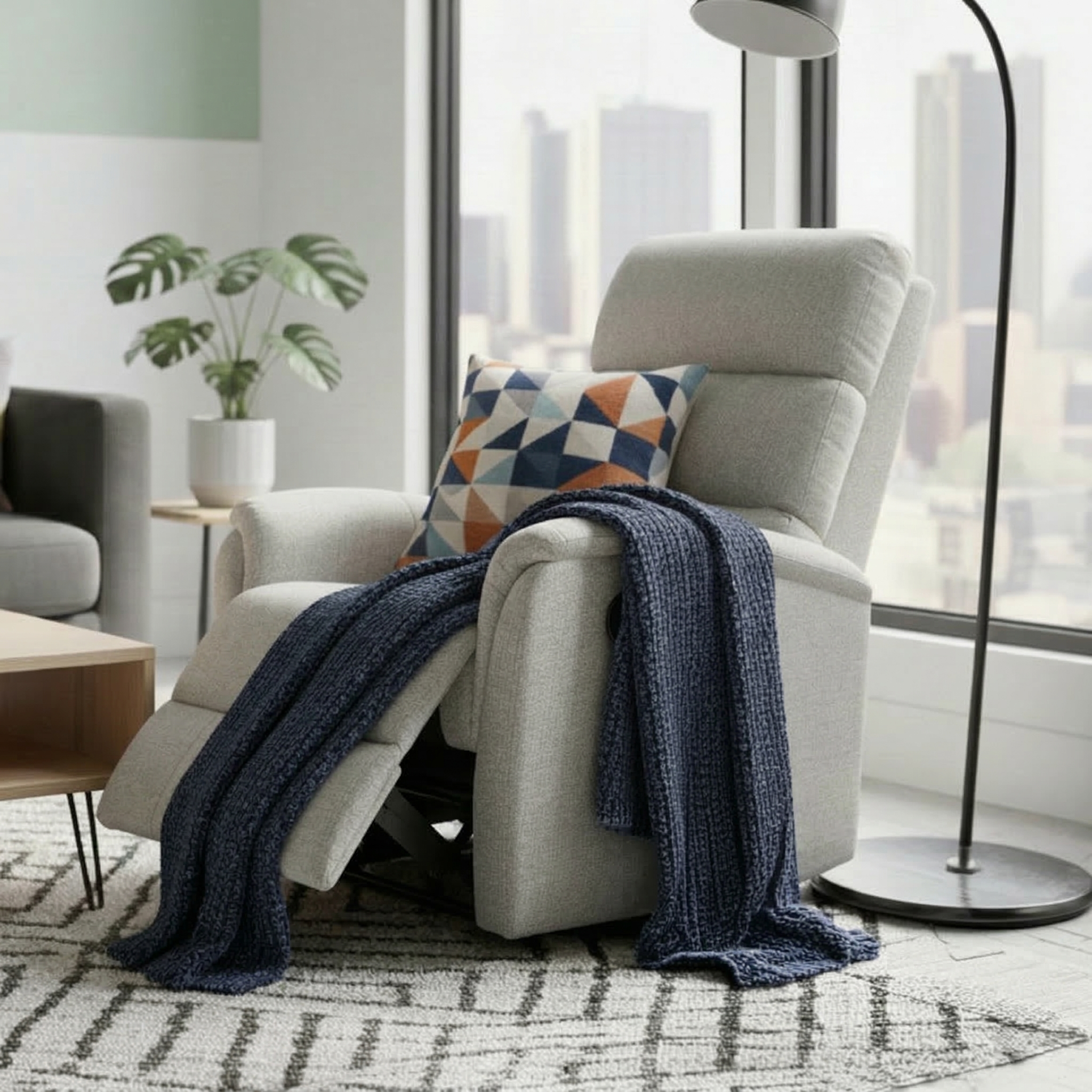 • הדום Full Chaise: רקליינר בריפוד מלא ורציף המאפשר הרמת רגליים למנוחה מוחלטת ושיפור זרימת הדם.